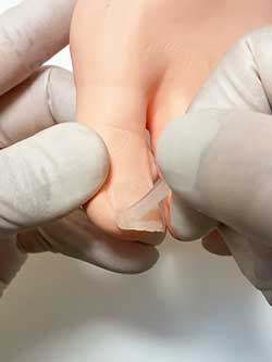巻き爪に特化した専門の国際・国内の特許取得済み日本生まれの補正技術です。補正器具は、選び抜かれた特殊樹脂を使い、今までにない湾曲面をもった補正具を使用するため、巻いた爪を持ち上げやすくなりました。もちろんゆっくり優しく持ち上げるため、心地よい施術を受けていただけます。